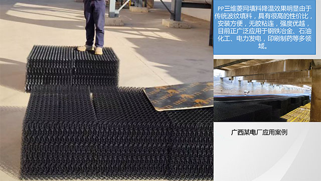 PP三維菱網(wǎng)填料降溫效果明顯由于傳統(tǒng)波紋填料,具有很高的性價比,安裝方便,無膠粘連,強度優(yōu)越目前正廣泛應用于鋼鐵治金、石油化工、電力發(fā)電,印刷制藥等多領(lǐng)域。